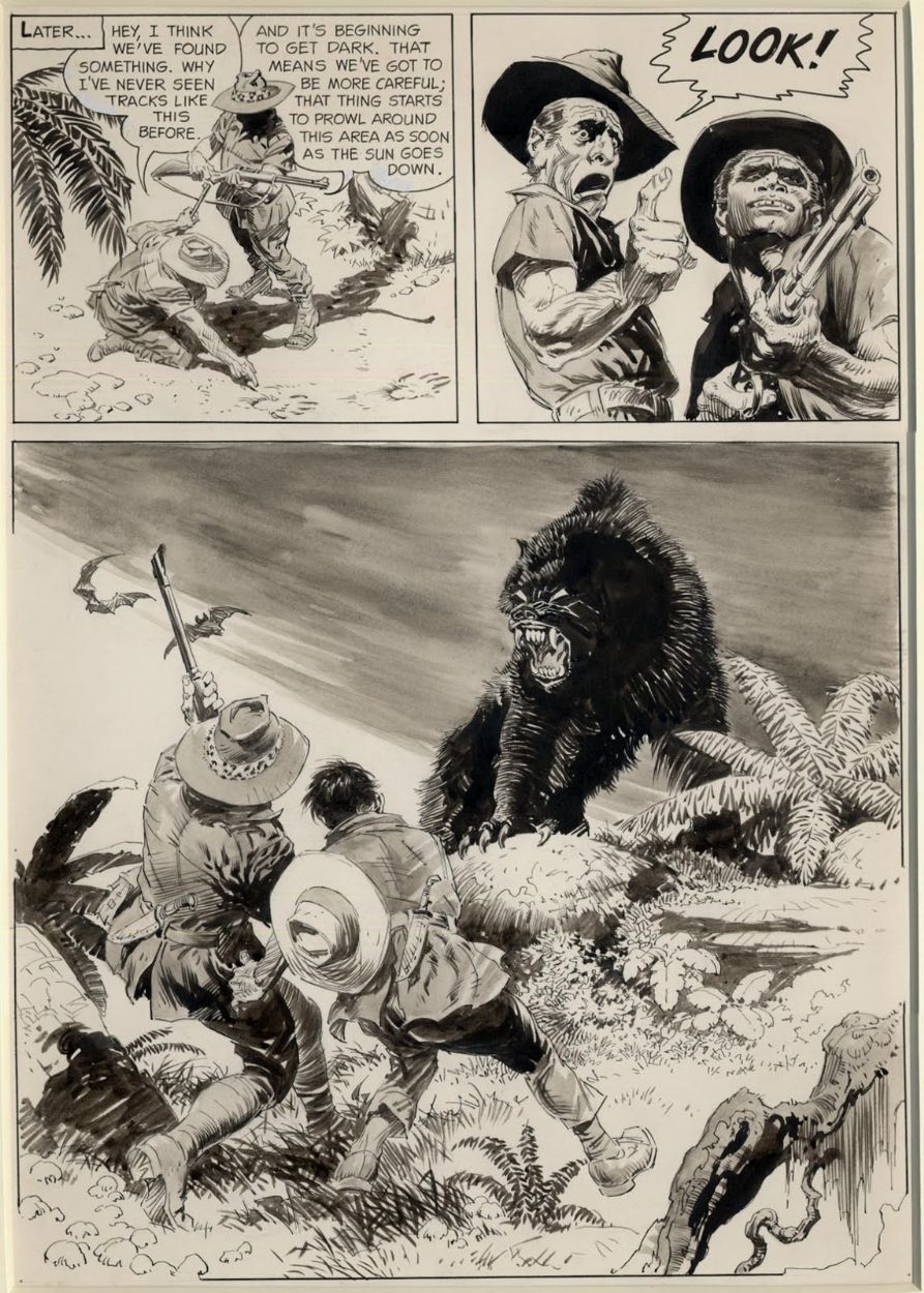 It was as an adolescent that I was first exposed to the work of fantasy and sci-fi illustrator Frank Frazetta. In his heyday, he was in a class all his own. His paintings could be found on magazines, paperback novels, album covers, and so many other mediums. He began in the 40s and 50s inking for various comic strips and comic books, though a lot of his early work was uncredited, as he was often filling in for the main artist. From the 60s through the 80s, his cover art was so pervasive that, even if you don’t recognize the name, you’ve probably come across his work somewhere. Any fan of the fantasy characters Conan the Barbarian or Tarzan have seen dozens of examples. Early Warren magazines Creepy, Eerie, Vampirella, and Blazing Combat featured Frazetta as well.